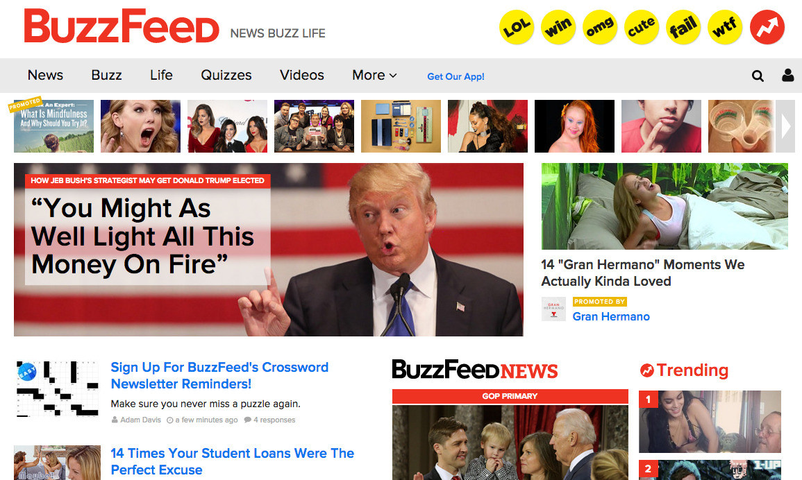Buzzfeed在2006年的网站也是图文结合,但当下的网站设计排版更加丰富,图片和标题的结合也更有层次。