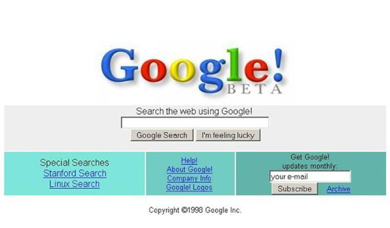 1998年的谷歌logo还带着衬线和阴影,经过这十几年来的多次改变,谷歌的logo变得更加扁平化,网站入口也更符合当下的审美。