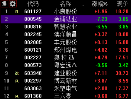 市场焦点股小康股份(7天6板)高开1.96%、金浦钛业低开7.23%、智慧农业低开6.55%,锂电池板块澳洋顺昌(3板)高开3.32%、丰元股份(2板)高开0.13%,煤炭板块郑州煤电(3板)高开4.82%,充电桩概念奥特迅高开4.79%,有色板块粤宏远A(2板)低开8.56%,化工板块建业股份(2板)高开7.11%,军工板块博云新材高开3.87%,光伏概念禾望电气高开2.00%,网络安全板块三六零高开0.60%。