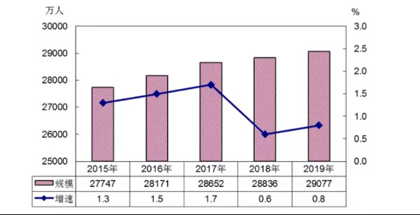 之后,农民工开始了持续增长,到2019年,农民工数量已经高达2.9亿。