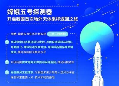11月24日,随着嫦娥五号成功发射,这句颇为形象的话很快在网络上流传开来。作为我国探月工程“绕、落、回”三步走中的最后一步“回”,嫦娥五号将开启我国首次地外天体采样返回之旅——飞到月球挖取月壤,再带着月壤返回地球,这被认为是我国迄今最复杂的航天工程之一。