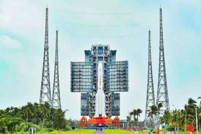 长征五号遥五运载火箭和嫦娥五号探测器完成技术区总装测试工作后,垂直转运至发射区。图片均为新华社发