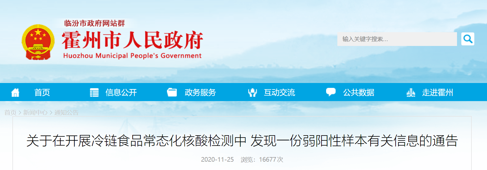 据霍州市人民政府网消息,2020年11月25日,山西省霍州市对全市销售的冷链食品进行常态化主动检测中,发现一份厄瓜多尔“王牌”青虾外包装标本的新冠病毒核酸检测呈弱阳性。对此,市新冠肺炎疫情防控工作领导小组高度重视,迅速启动应急预案,积极开展应急处置相关工作。目前,涉事冷链食品已全部封存并进行采样检测,涉事场所已临时关闭,已对相关从业人员进行流调排查、核酸检测和隔离管控。
