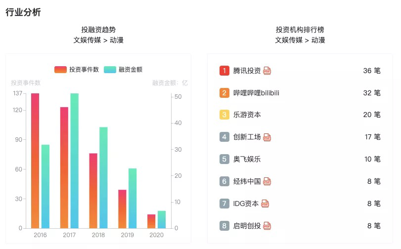 虽然动画市场相关融资下滑至十余起,但市场上的入局平台和片单层出不穷。