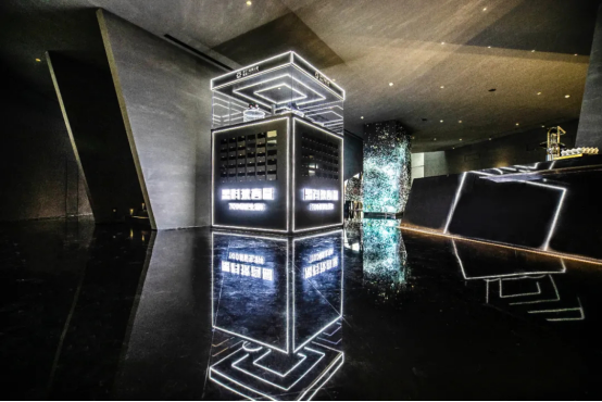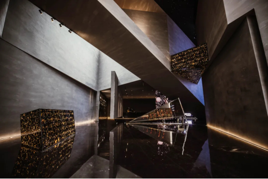 大量高级灰的主色调、棱角分明的墙体、大开大合的切割线条、一个具备空间感、未来感、科技感、几何美学的“工艺品”冲击着每个来访者的感官。