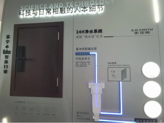 项目在喝水这方面细节,也考虑到位:采用AO史密斯24小时净水系统,直冲式前端过滤,出水就能喝,方便且健康。