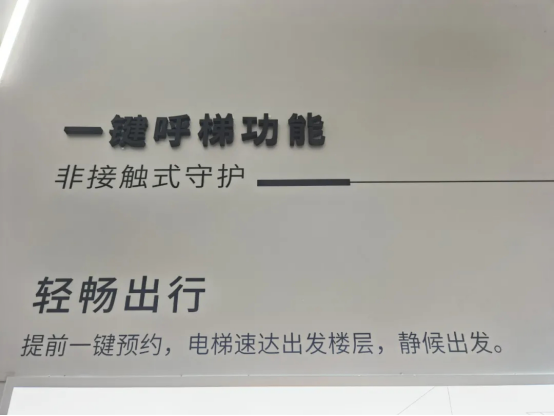 而一键呼梯功能,可以在家里就预约电梯,到达出发楼层;回家的时候,在入户大堂呼叫电梯,行至电梯,客梯就已到达。