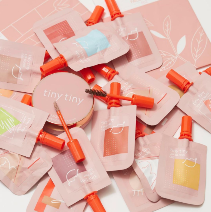 这一系列彩妆外包装以粉色为主视觉色调,搭配线条简单的字体;同时,该系列产品的容量和体积都较一般彩妆产品更小一些,这正是品牌取名“tiny”(微小)的原因。根据公开资料,这样设计意在减少彩妆品浪费,同时也鼓励消费者入手多款颜色产品,满足每日不同风格的着装搭配。