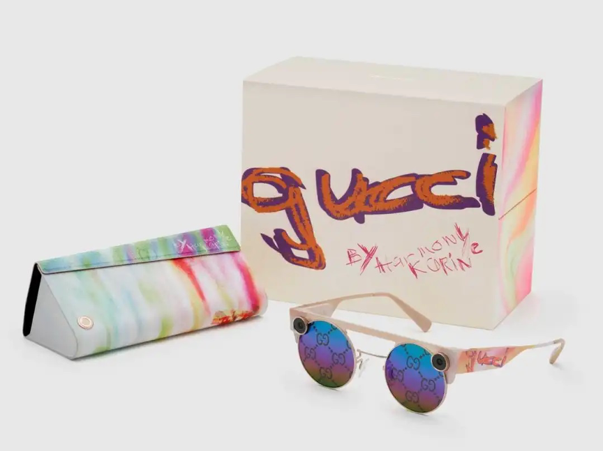科技公司Snapchat也与奢侈品牌Gucci合作推出了一款限量版 Spectacles 眼镜,眼镜的造型不仅时尚,还可以帮助佩戴者拍摄和制作AR视频。