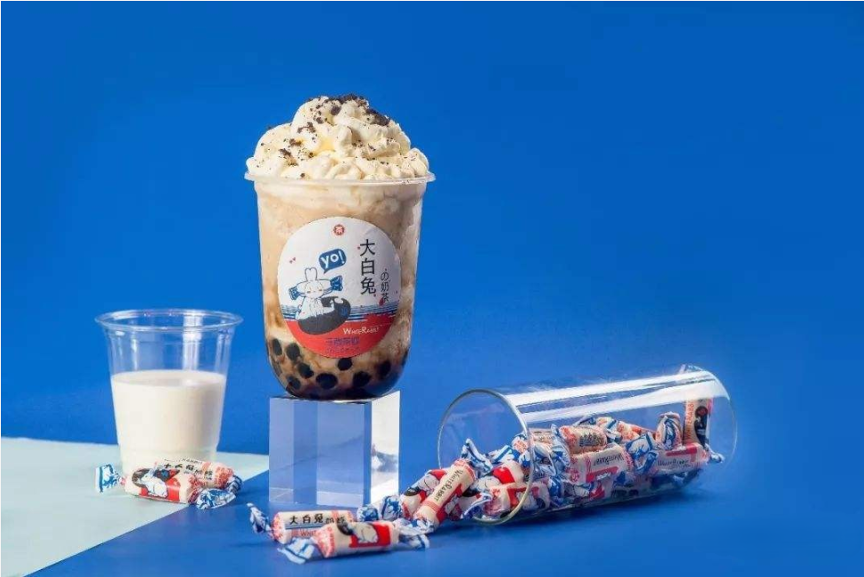 2019年,大白兔开始布局新式茶饮市场,在上海开了第一家大白兔奶茶店。一开业就收到了众多年轻人的追捧,有人甚至排队3个小时只为了能买一杯带着大白兔图案的奶茶。