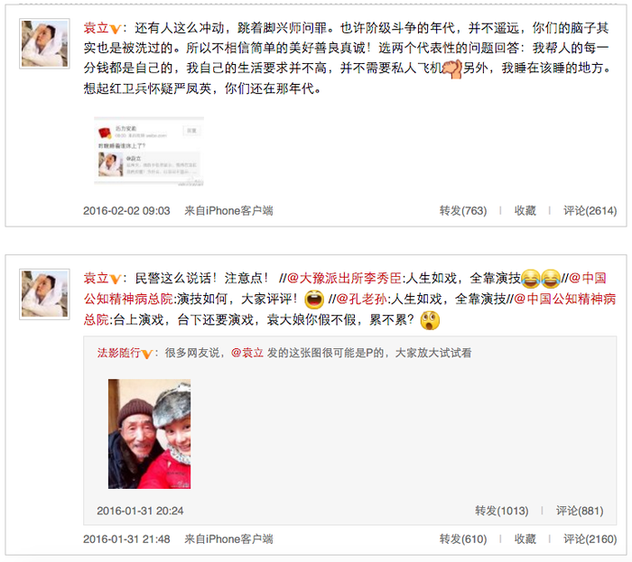 近来少有作品的袁立晒出了自己与独居老人的合影,却遭网友评论“昨晚睡在谁床上了”。昨日,袁立在微博上公开回复:“我睡在该睡的地方。”