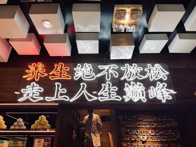 随处可见的文字标语、中药材墙、杯套、桌上养生群二维码也都在提示你,喝不了吃亏,买得到养生。
