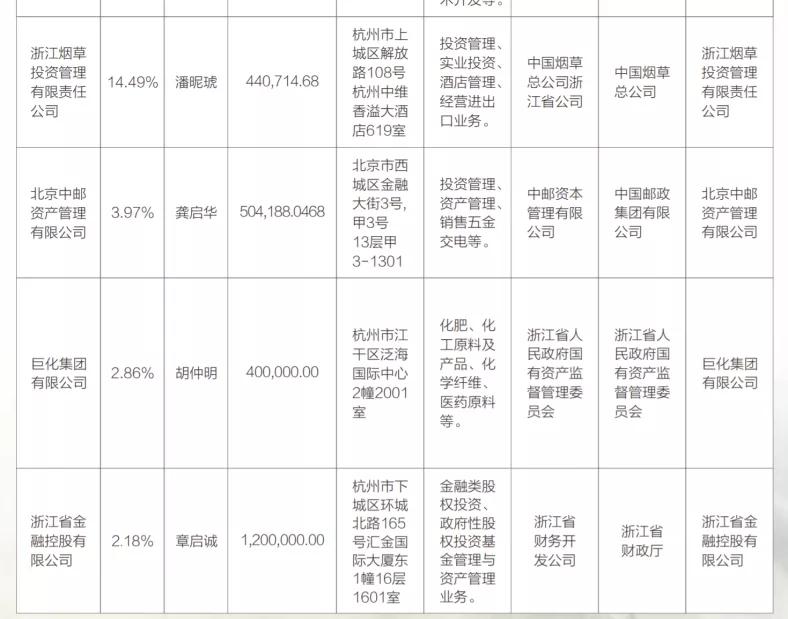 万向信托虽是民营,但股东来头都不可小觑。第二大股东浙江烟草投资,实控人是中国烟草总公司;第三大股东中国中邮,实控人是中国邮政集团;末位两股东,实控人分别是浙江省国资委和浙江省财政厅。可以说背景和家底深厚。