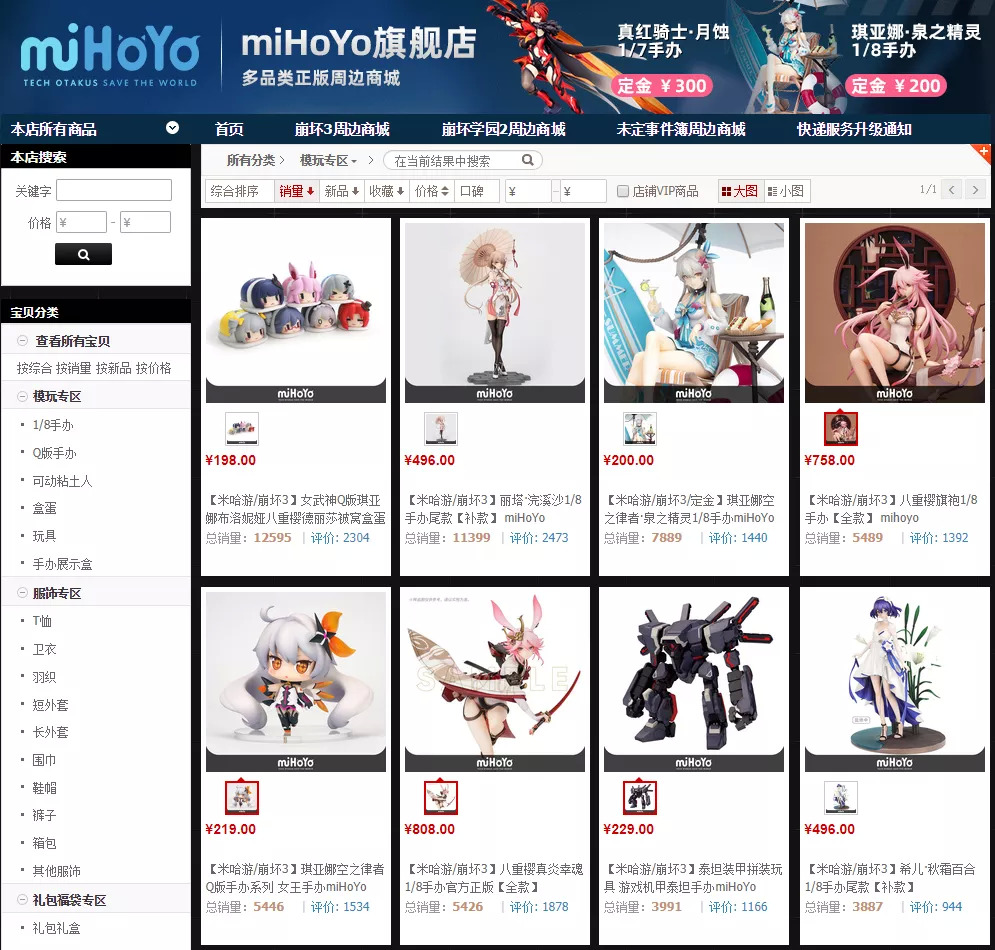 拉开米哈游天猫旗舰店的销量来看,虽然无法得知米哈游在双十一期间的销售额,也可以肯定的是天猫旗舰店的吸金能力是无法与新近上位的《原神》相提并论,但是毫无疑问的是,这个数据已经让不少的电商人羡慕不已。