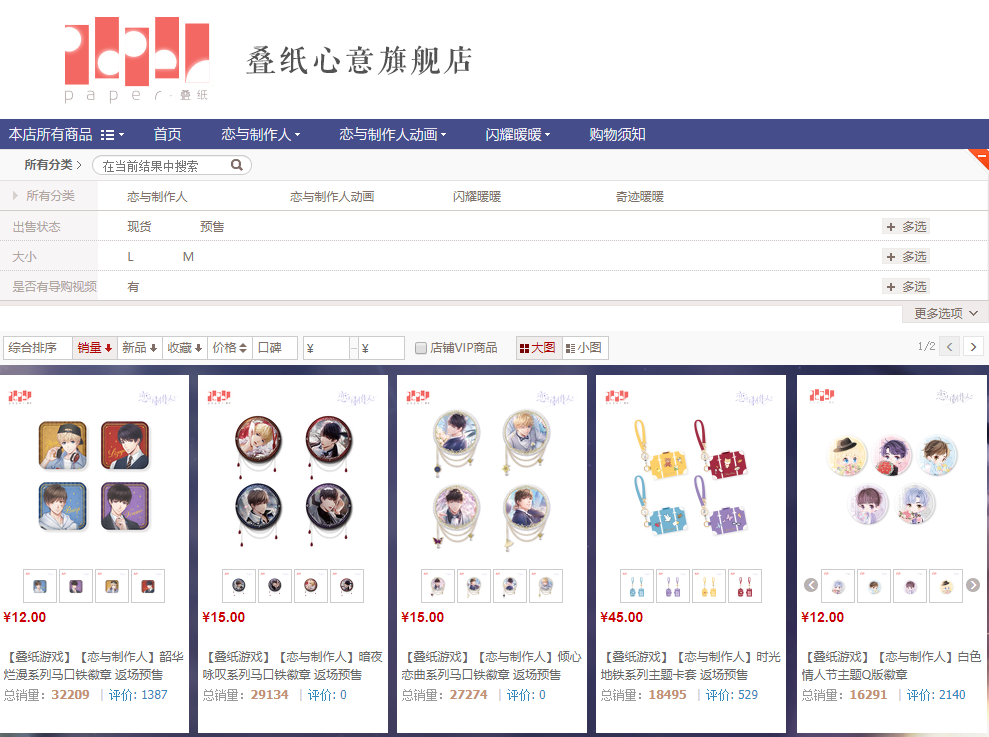而主打传统电商平台的,比如以叠纸网络为代表的二次元游戏厂商在天猫上的周边销量都不低。