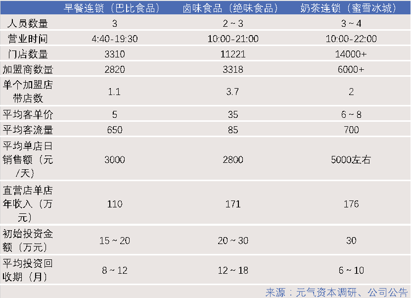 为了更直观的比较“连锁业态”下不同公司的表现,我们选择了业态里较为成熟的两种模式进行对比:卤味食品与奶茶。