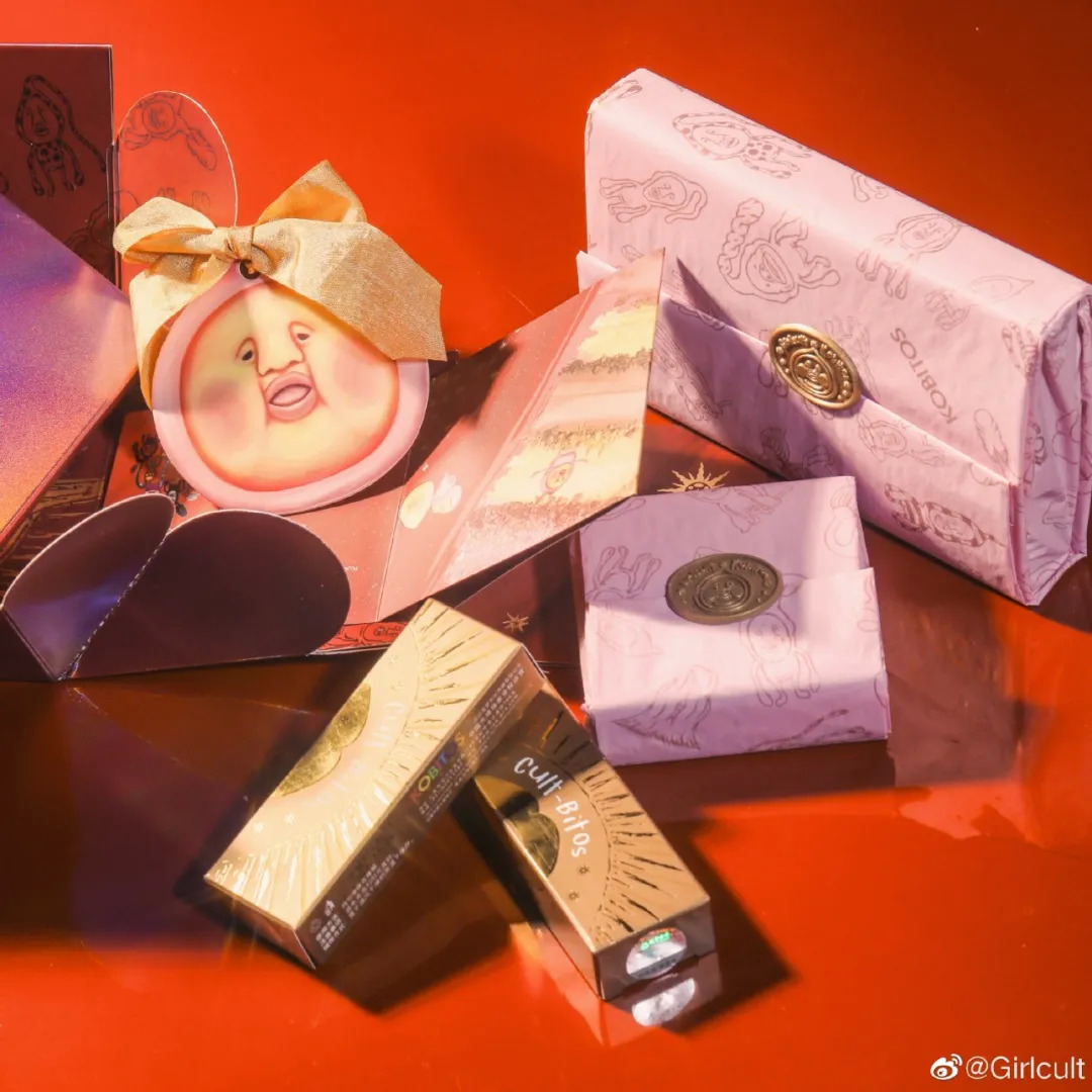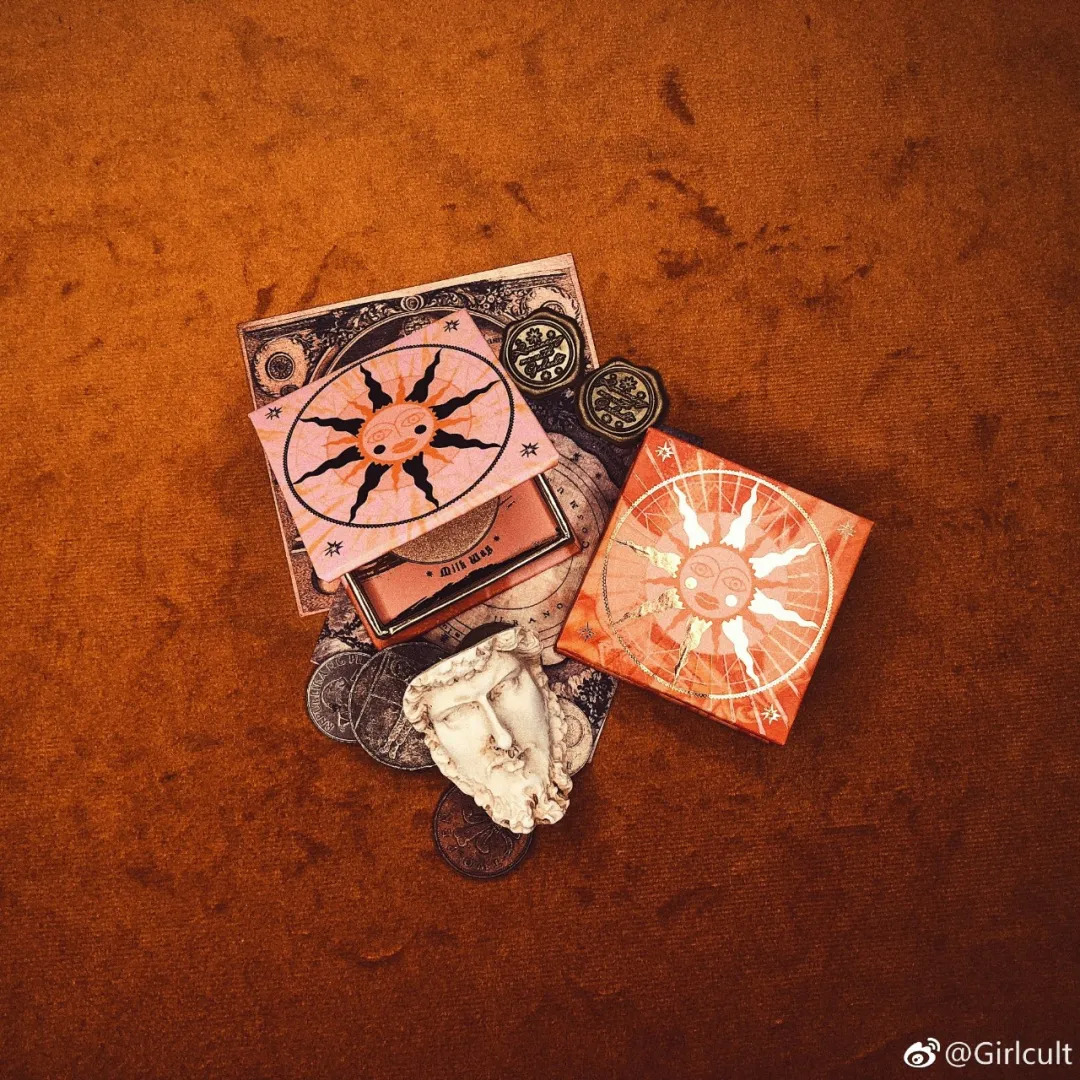 Girlcult联创兼首席设计师小宇介绍道:“在产品打造上我们一直都是围绕浪漫、冒险、怪诞、复古这几个点去做延伸,像太阳、眼睛等几个图案是基于我们产品线衍生出来的,比如眼睛就是对应眼部类彩妆,而太阳是对应面部类颊彩。”