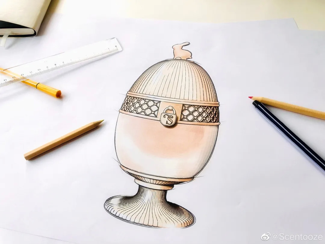 小彩蛋包装呈现了Scentooze品牌标志兔子造型、艺术网格金属镂空、立体活动锁扣、立体英文凹陷“I am going to tell you a story…”等细节,而这些细节是品牌和设计团队经过众多磨合之后的成果。据悉,小彩蛋前前后后光是设计都做了不下50个版本。
