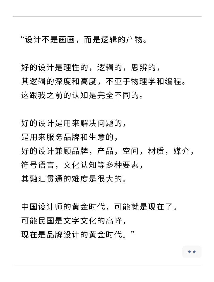 行业里一位不愿透露姓名的人士之前在品牌策划公司为甲方爸爸服务,现在跳到品牌公司负责品牌的整个视觉升级。新公司的内部团队没有很好的内容创作和设计能力,但老板又不打算外包,现阶段大家就处于互相折磨、互相为难的一个过程。