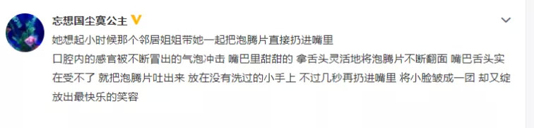 喜欢口含泡腾片的消费者 图片来源:微博@忘想国尘寞公主
