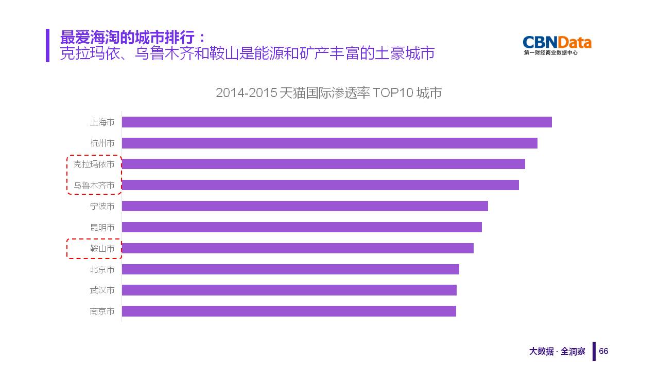 报告显示,在跨境电商渗透率上,“土豪们”隐匿的新疆,以及贵州、四川、青海、广西、重庆领衔的整个西部,相比而言出手更加阔绰。与上海、杭州同时上榜跨境消费热门城市的,还有克拉玛依、乌鲁木齐和鞍山等能源和矿产丰富的土豪城市。更令人惊讶的是,河池市、鞍山市、庆阳市这些三四线城市,登上了最爱跨境消费的土豪城市排行榜。