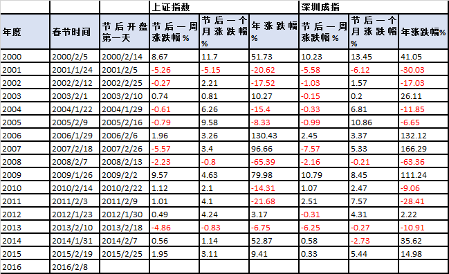 自2002年以来,市场无论如何演绎,除2014年微跌0.45%外,上证综指在春节假期休市前的一周均上涨,中国传统的红红火火过新年的心理效应表现的更为明显。