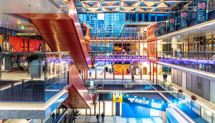作为体验式商业,桃源·π坚持“常逛常新”的理念,每一处角落都十分精致,激发游人无限探索的热情。桃源·π主入口是由粉红色线条和明亮灯光组成的拱形桃花瓣,艺术扶梯、连桥玻璃构造、玻璃天顶花园、灯光交互效果...细节上精心设计,带你身入其境般深化桃源情景。