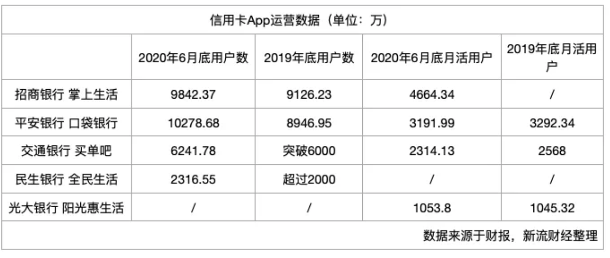 当前,行业里相对活跃的信用卡App包括招商银行掌上生活、交通银行买单吧、平安口袋银行、广发信用卡发现精彩、中信银行动卡空间、光大银行信用卡阳光惠生活、浦发银行浦大喜奔、中国银行缤纷生活、民生信用卡全民生活、兴业银行好兴动等。