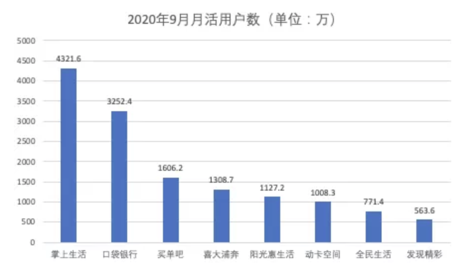 从信用卡业务发展在前列的几家银行来看,信用卡App已经有了质的飞跃。平安银行的信用卡App口袋银行用户数已经破亿,招行紧随其后,掌上生活App累计用户数达9842.37万。从月活上来看,截至今年9月份,掌上生活App的月活高达4321.6万,遥遥领先。
