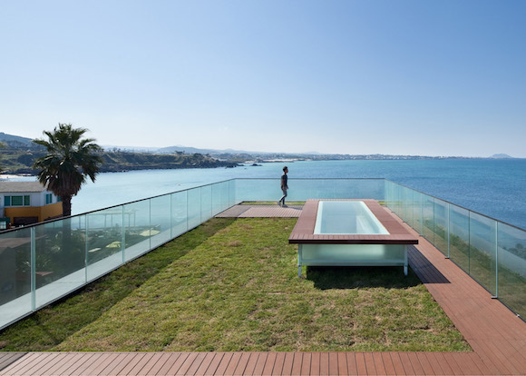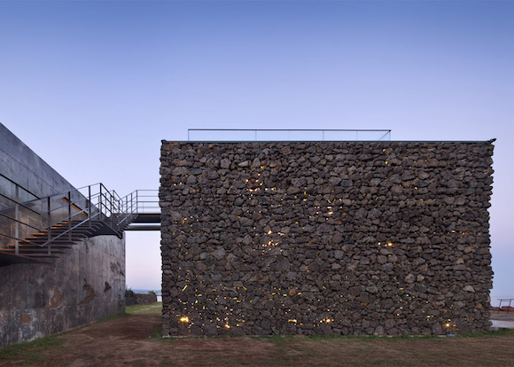 当玻璃外墙映出海边美景,石墙又和防波堤要想呼应,整个咖啡馆建筑本身充分体现了济州岛的海边之美。