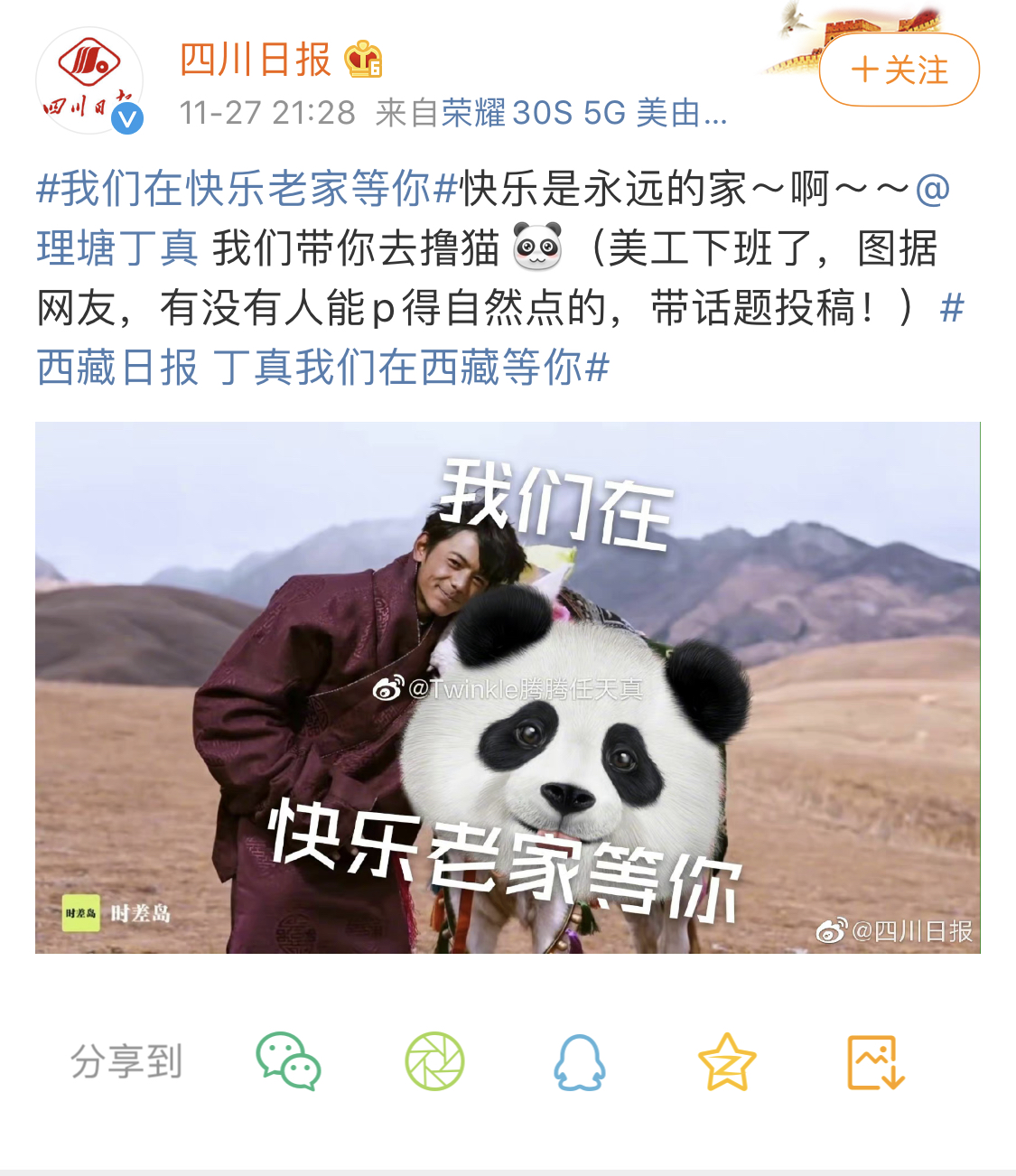 不同于普通网红的丁真,被赋予了一层官方性质和当地旅游形象宣传的意味,围绕他的话题还在继续——在微博,还引发了@四川日报、@西藏日报等官微之间的battle,以及包括山东、陕西、青海、云南、湖北、辽宁、江苏等多地官微和媒体的“邀请丁真来我家乡”的抢人大战。