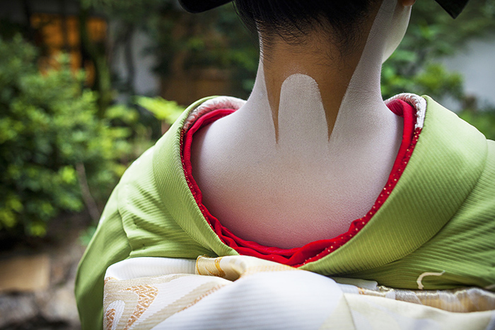 日本京都宫川町,一名舞伎脖子后的妆容。