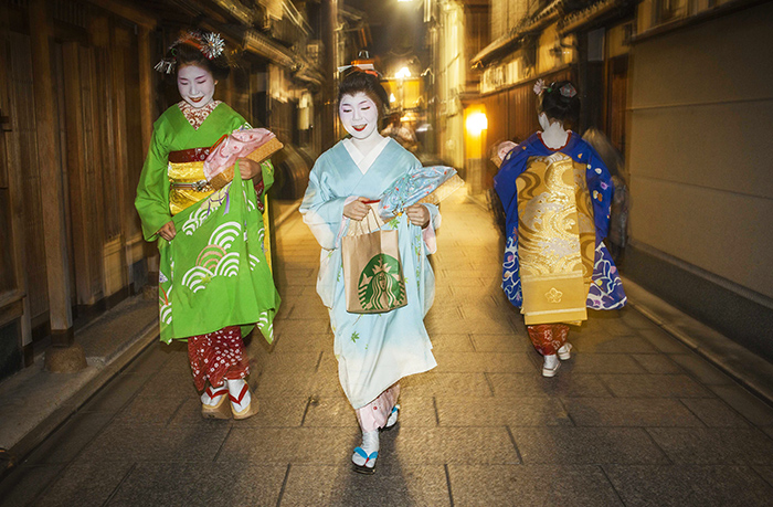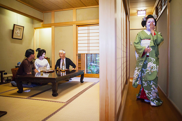 在很多时候,艺伎的世界是对外界关闭的,游客有时可以看到艺伎从她们的居所前往表演的茶舍时在路上行色匆匆的样子。