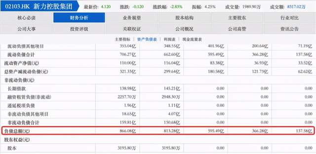 2019年,新力负债总额已经达到813.28亿元,同比增长36.57%;