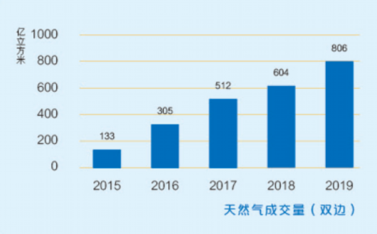 2019年,交易中心天然气交易突破800亿立方米(双边),稳居亚太地区天然气现货交易首位。