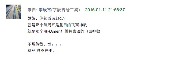 越来越多的人宣称信奉FSM,感受到了飞面大神的降临。