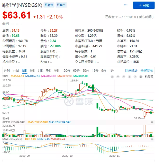 同时,亏损也成为跟谁学股价震动的原因。今年10月20日,跟谁学对第三季度财报进行了了财务预警,21日盘前跌幅扩大到30%。
