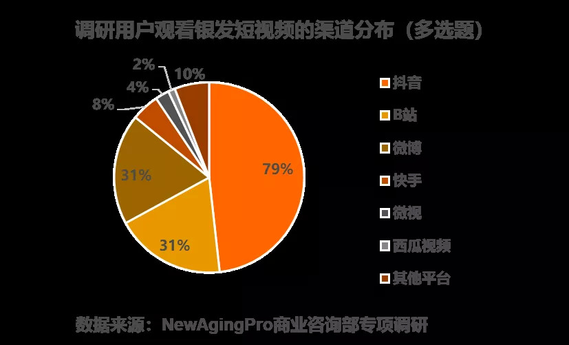 2.1年轻人观看银发短视频的三大主流平台:抖音、B站、微博
