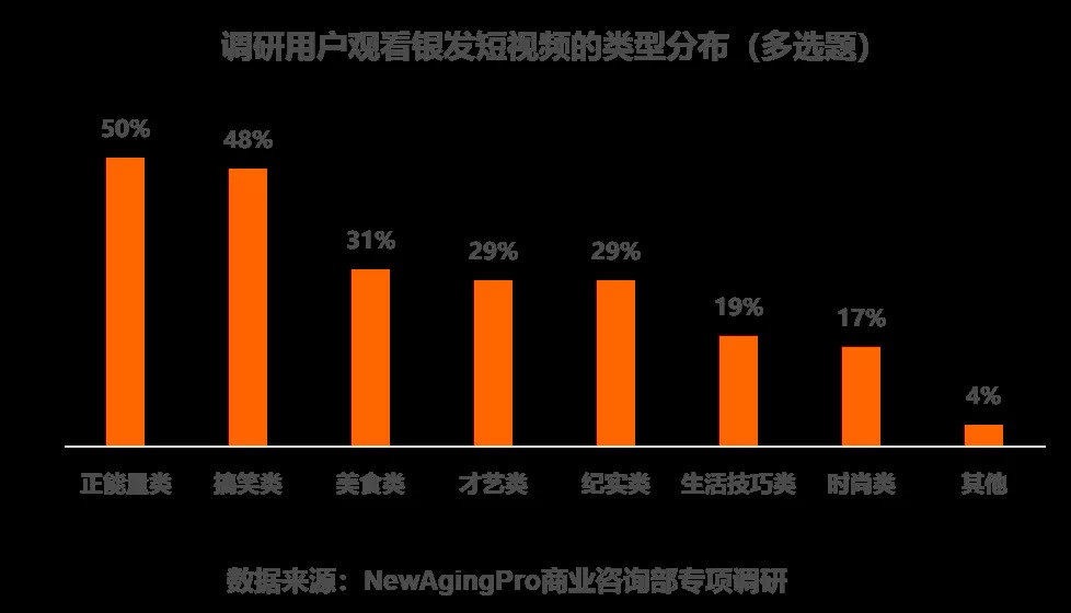 3.1最受年轻人喜爱的三大银发短视频类型:正能量类、搞笑类、美食类