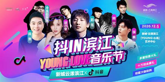 无论你是抖音神曲爱好者,还是想成为“rap star”的嘻哈范,还是钟爱甜甜情歌的感性青年!12月5日「抖IN滨江 YOUNG LOVE音乐节」一一统统满足你心愿!