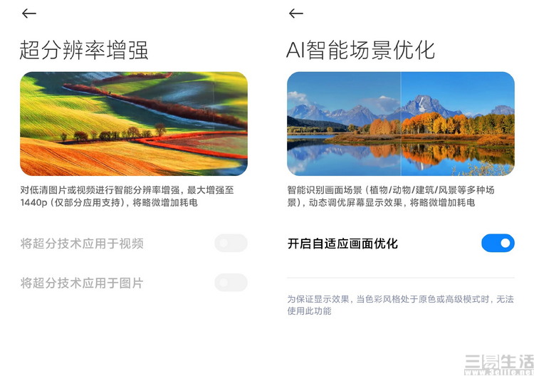当时间来到2020年,我们发现显示增强技术突然一下就成为了国内手机厂商眼中的“香饽饽”。前有OPPO Find X2系列、一加8 Pro高调发布视频插帧功能,后有黑鲨游戏手机3 Pro与努比亚红魔5G将色彩增强和插帧处理带入手游领域。在那之后,iQOO推出了甚至能用来处理老照片的显示超分辨率功能。并且就在前段时间刚刚曝光的内测版MIUI系统中,小米手机的“超分辨率增强”、“AI智能场景优化(色彩处理)”、“视频画质增强(HDR化)”三大显示增强新功能曝光,直接明示优质的视频播放体验将会成为2021年小米手机新的重点功能。
