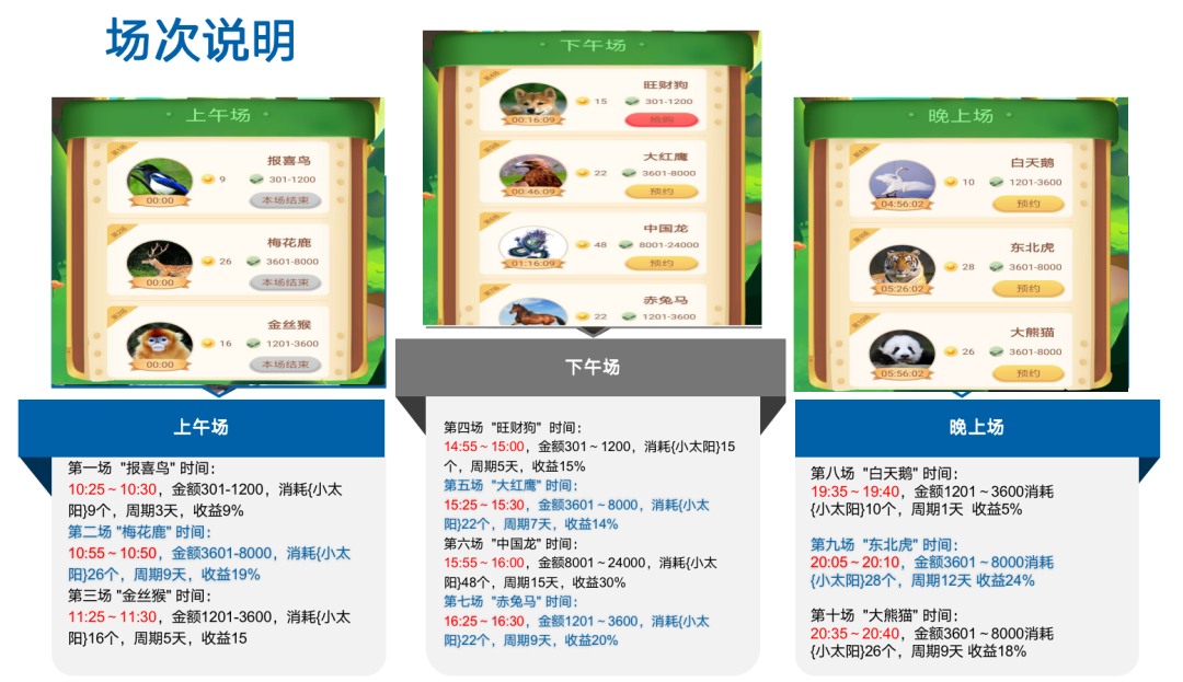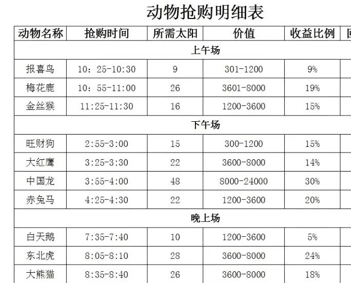 这款游戏的模式很简单,就是花钱抢动物,然后在对动物进行喂养,喂养的食物是太阳,不同的动物价值不一样,到账周期,利润不一样。这点和云养猫的套路一致。