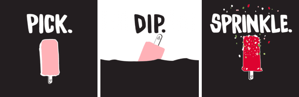 这其实有点像化妆的步骤。首先,顾客根据自己的口味选择“底妆”,可以有香草、巧克力、草莓、薄荷、咖啡等九种不同的味道;其次,从黑巧克力、白巧克力、牛奶巧克力或焦糖四种涂层中选择一种来“定妆”;最后,抹点“腮红”来修饰一下,比如彩虹糖、巧克力、脆麦片等。