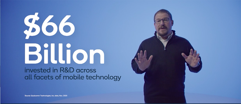 高通预计,2021年全球5G智能手机出货量将达到4.5至5.5亿部,而目前搭载骁龙的5G终端已经超过700款。安蒙称,高通在移动技术领域的研发投入已经超过了660亿美元。