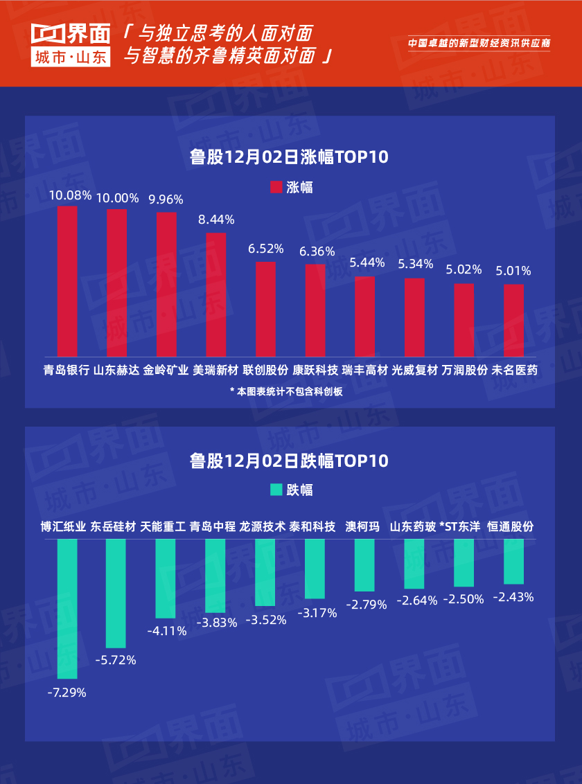 受大盘影响,12月02日,山东107只股上涨,111只股下跌,6只股持平。
