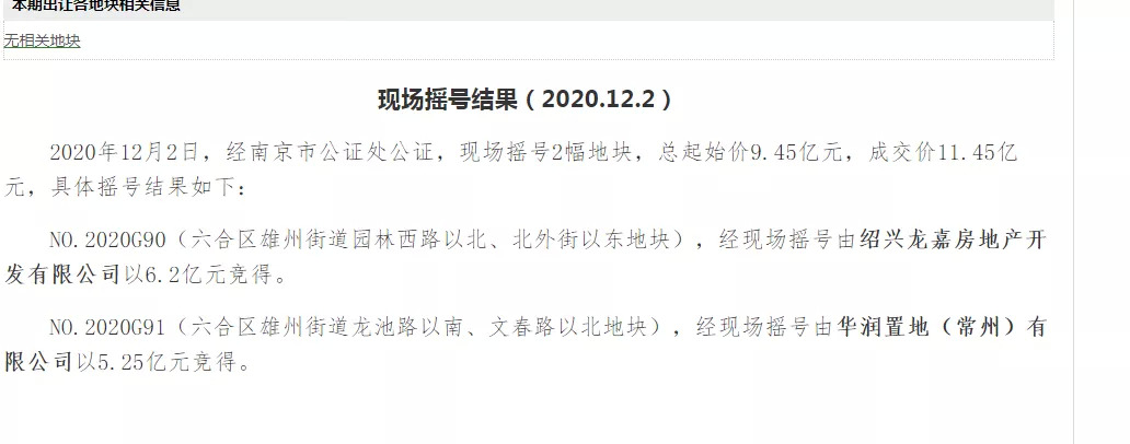 就在刚刚,据南京土地市场网数据显示,两幅地块摇号结果出炉。