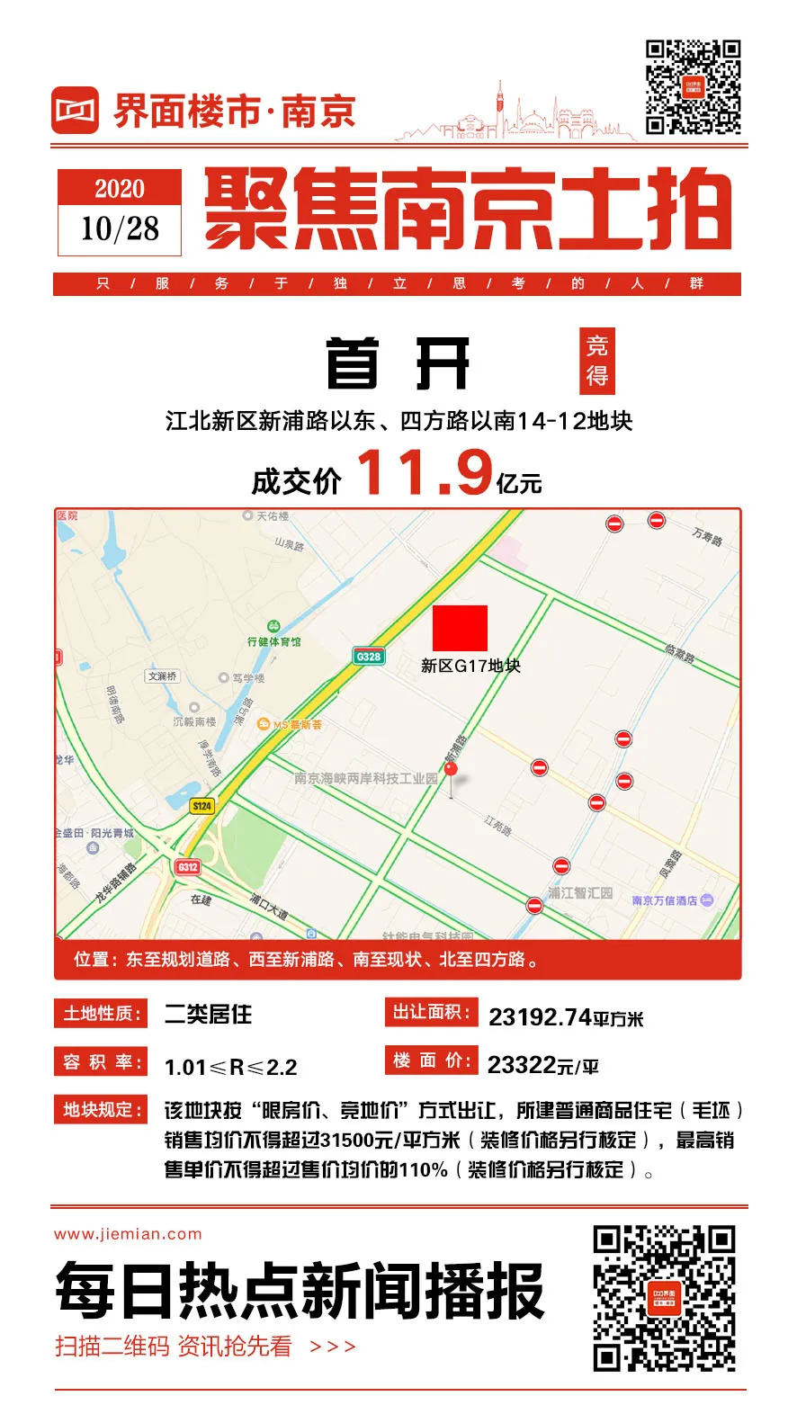 今年10月28日,江北核心区G17地块经过16轮竞拍,达到最高限价11.8亿元,进入摇号程序,最终被北京首都开发股份有限公司以11.9亿元拿下,成交楼面价23322元/㎡,未来房价毛坯限价31500元/㎡。