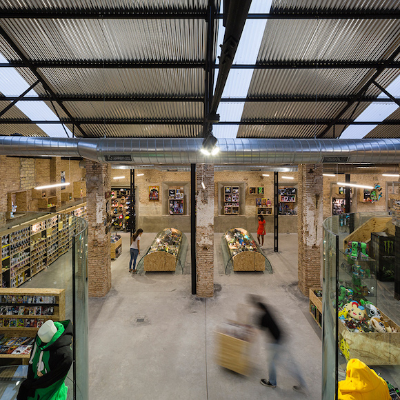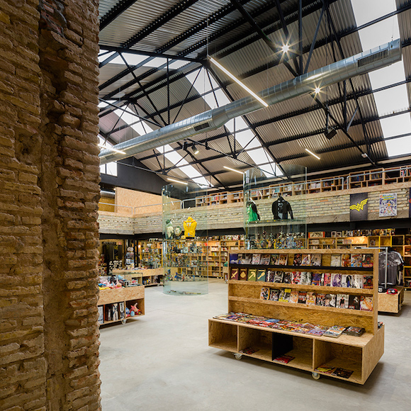 在西班牙建筑事务所 Serrano + Baquero Arquitectos 的努力下,西班牙港口城市塞维利亚临海工业区的一幢废弃仓库里开出了一家大型动漫店。现在,这幢在过去只会有货运卡车进入的建筑,已经成为了塞维利亚当地动漫爱好者必去的胜地。