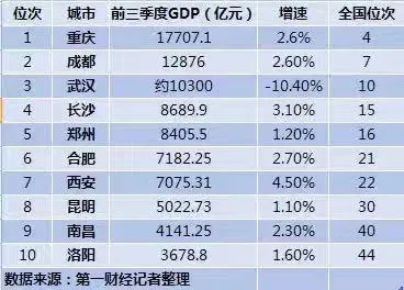 恰好,日前第一财经统计梳理了中西部GDP十强城市名单,为大家提供了一个全面的观察视角。