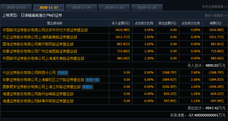 11月27日郑州煤电卖方就集中现身方新侠、章建平等多路游资的常用席位。